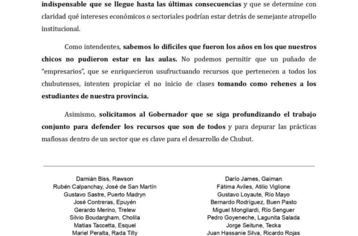 Más de treinta jefes comunales respaldaron la acción judicial del gobernador Ignacio Torres para...