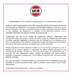El radicalismo chubutense fue categórico: las bancas no son personales, la alianza fue votada...