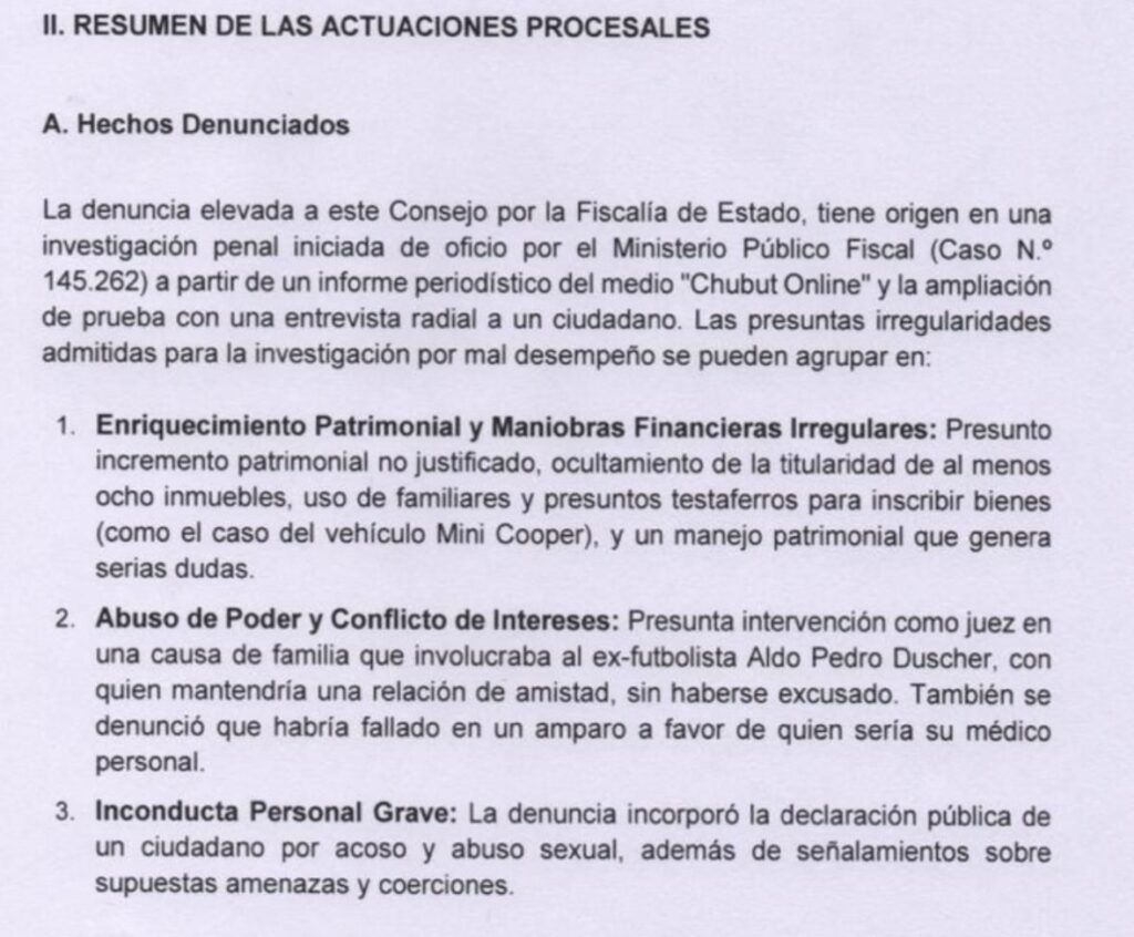 El Consejo de la Magistratura de Chubut tiene ahora la responsabilidad de evaluar estos hechos que, según el Fiscal de Estado, atentan contra la credibilidad y el funcionamiento del sistema de justicia en la provincia.