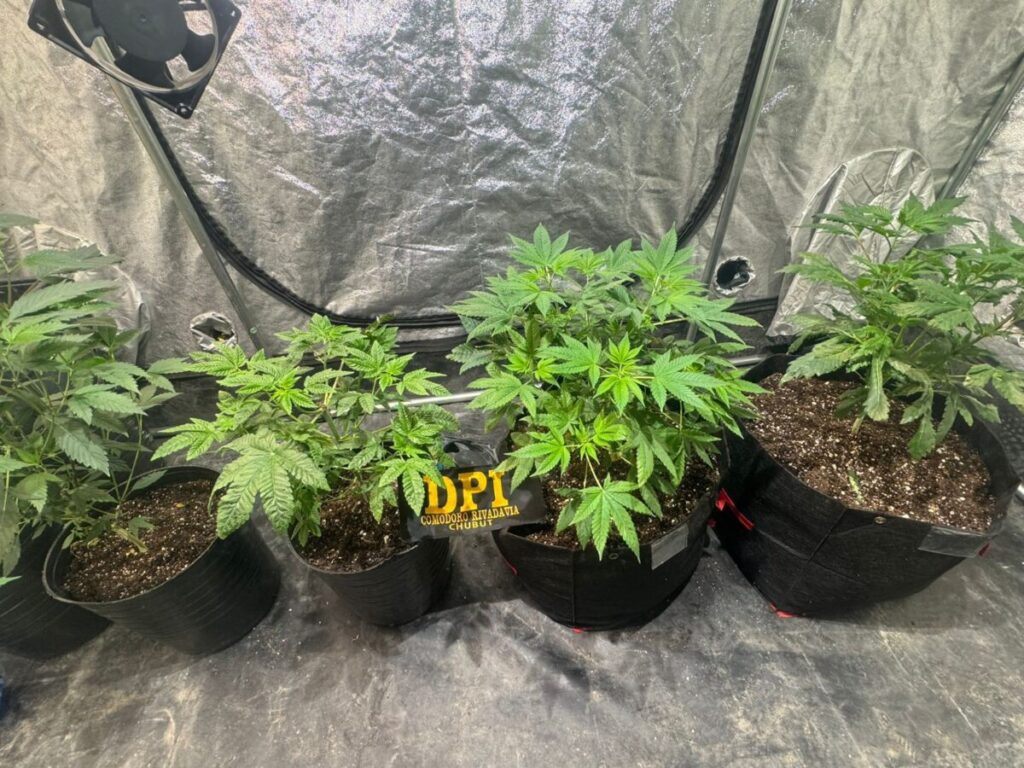 Asimismo, en uno de los domicilios requisados los agentes hallaron cuatro plantines de sustancia vegetal, que arrojaron resultado positivo al test de campo, determinándose que se trataba de plantas de cannabis sativa de 72, 47, 52 y 55 centímetros de altura, respectivamente. Las mismas fueron incautadas en el marco de la causa, informándose de las diligencias al Juzgado Federal con sede en Rawson por infracción a la Ley de Estupefacientes.